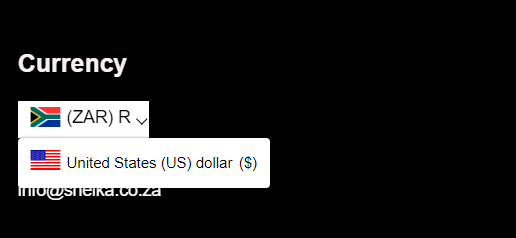 You now have the choice of transacting in South African Rands (ZAR) or United States Dollars (USD). Simply make your selection on the currency drop down and shop way.